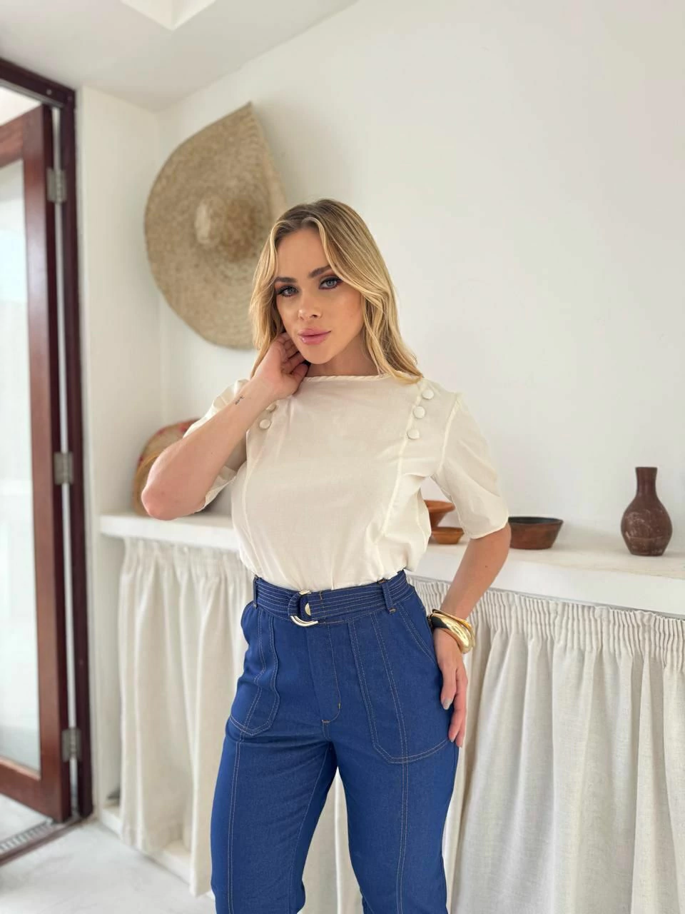 Blusa com Detalhe e Botão em Tricoline – Elegância e Versatilidade para o Seu Dia a Dia
