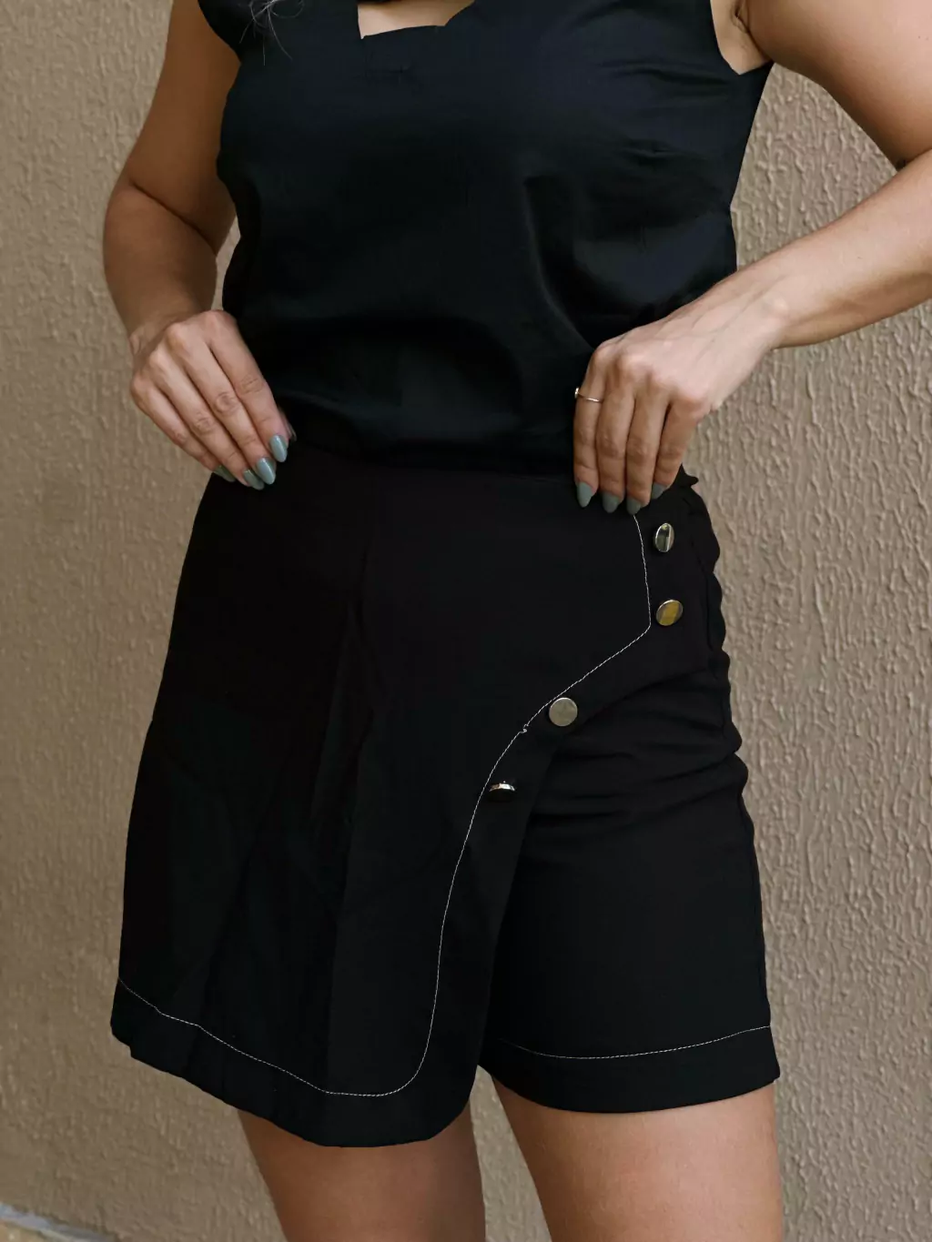 Transforme seu estilo com a Short Saia com Detalhe em Botão e sinta-se maravilhosa em qualquer ocasião!