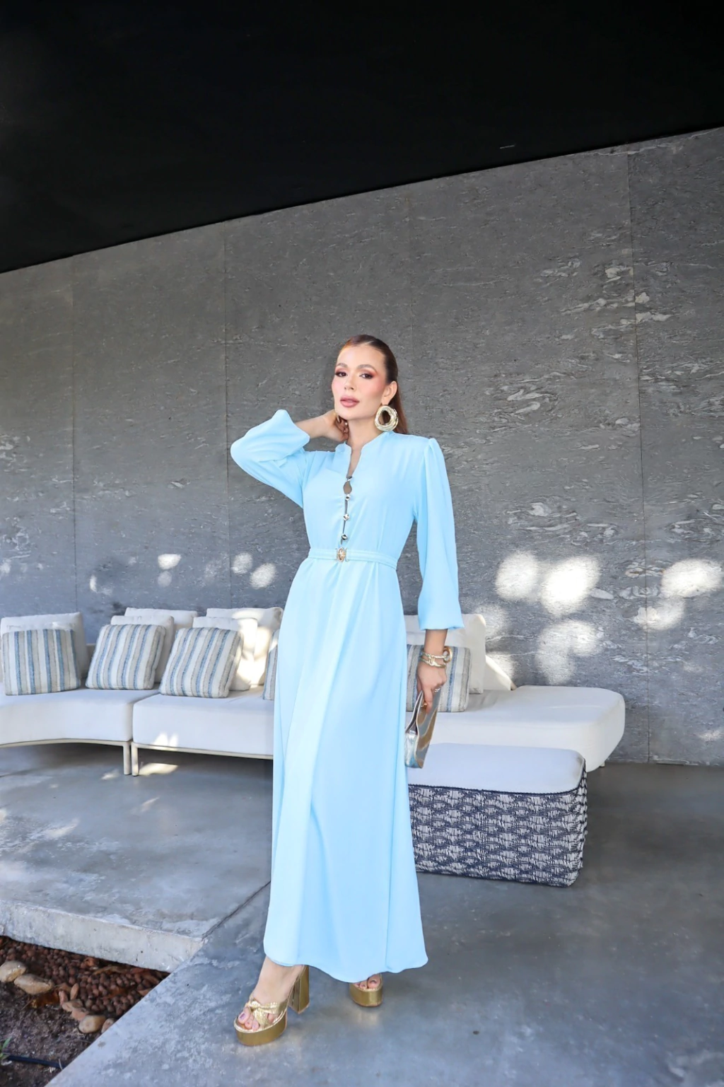 Este vestido une a delicadeza do design longo com o charme do cinto que valoriza a silhueta, tornando-se uma peça-chave para quem deseja um visual sofisticado e confortável. Ideal para festas, eventos sociais ou até mesmo para um passeio especial, ele é versátil e fácil de combinar.